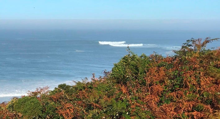 Or so I thought. Until I heard the sound of bagpipes. That’s right, there was some guy standing on the clifftop playing the bagpipes. It wasn’t just my imagination or some hallucinogenic effect from all the adrenaline, because Michi saw him too. It wasn’t the piercing, rasping sound that you normally hear from bagpipes; it was a haunting melody, more like a medieval love song or a Portuguese fado. It was a requiem, a lament for the kind of surfing experience that our children and grandchildren might never have. It was a call for help, from the experience itself, to us, the people who need to keep it alive.